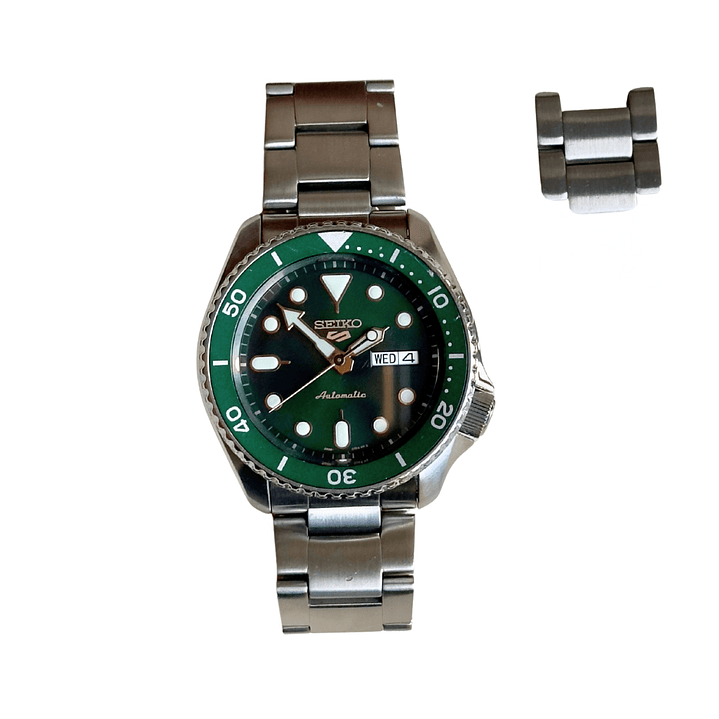 Hay relojes que siguen las tendencias, y hay relojes que las imponen. El Seiko 5 Sports "HULK" es una declaración de fuerza y estilo, un tsunami de color verde que inunda un diseño legendario con una energía renovada y audaz. Llévalo y siente el poder de un ícono moderno en tu muñeca.
